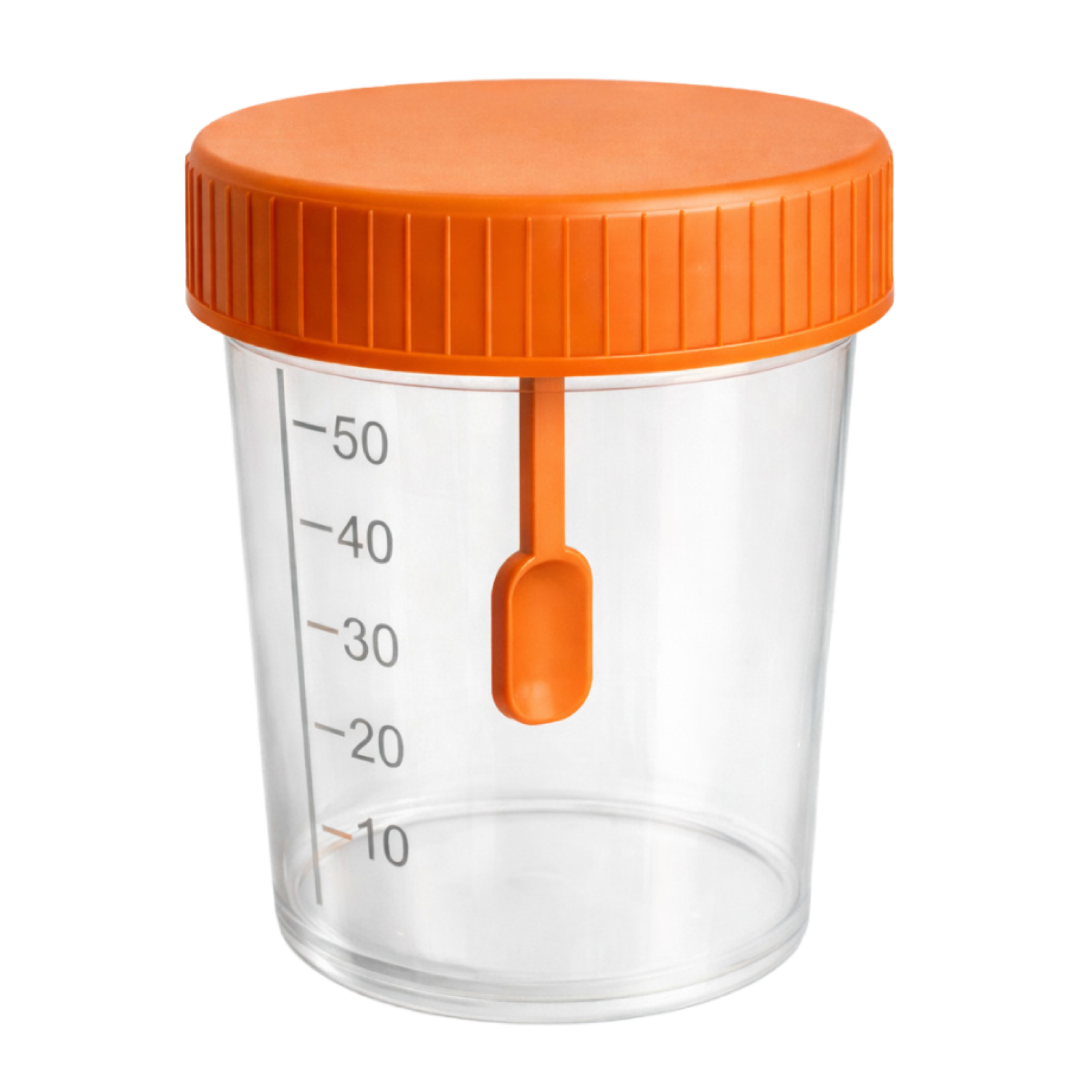 50 ml kaşıklı gaita kabı, geniş kullanım hacmi ve entegre spatulasıyla numune alma süreçlerinde pratiklik sağlar.